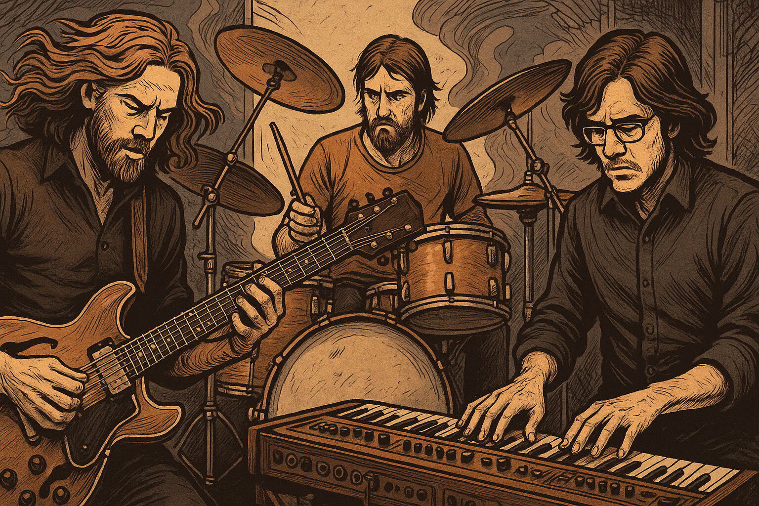 Ein Riff oder Rhythmus kann sich minutenlang wiederholen, leicht variieren, sich verdichten – und plötzlich in einer Explosion oder völligen Stille münden.
